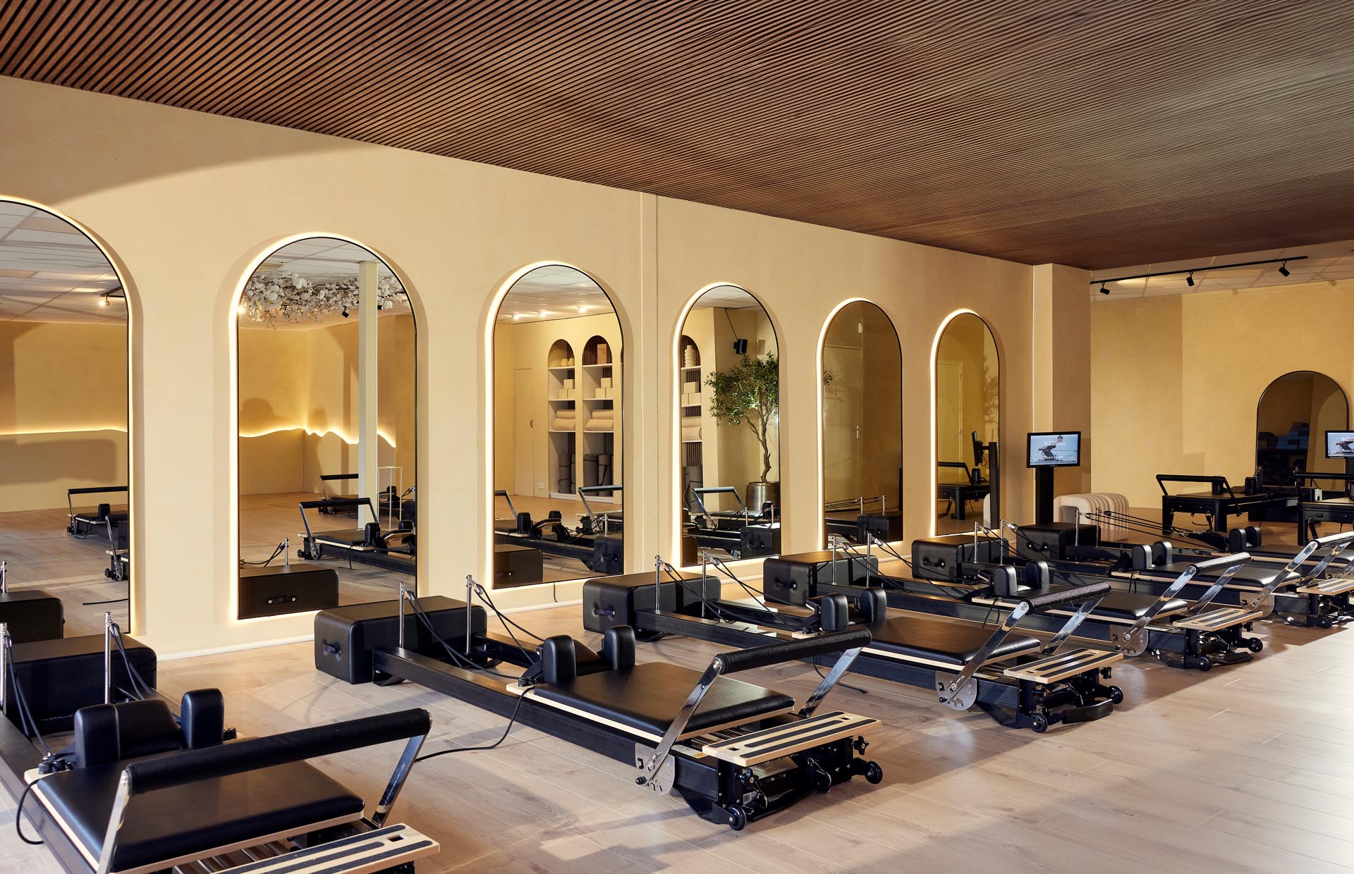 Een bijzondere toevoeging is de Reformer Kiosk. Buiten de vaste lestijden om kunnen bezoekers zelfstandig een virtuele reformerles volgen via de schermen in de studio. “De één traint liever ’s middags in alle rust, de ander in het weekend. Met de Kiosk bieden we flexibiliteit, zonder concessies te doen aan kwaliteit.”