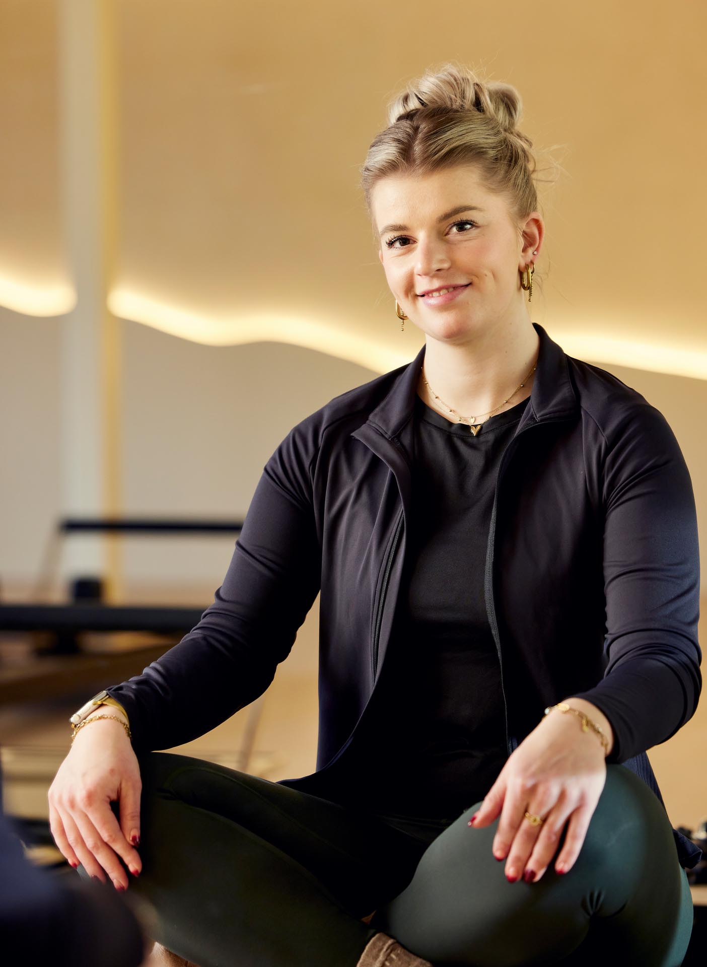 Wat haar daarnaast aanspreekt, is de sfeer. “Het is hier echt mooi en rustig ingericht. Die lichte uitstraling geeft meteen een fijn gevoel.” Fleur wisselt de groepslessen af met zelfstandig trainen. “Soms volg ik een les in de studio, soms kies ik voor de Reformer Kiosk. Die flexibiliteit maakt het extra prettig. En het is ook gewoon heel leuk om te doen.”