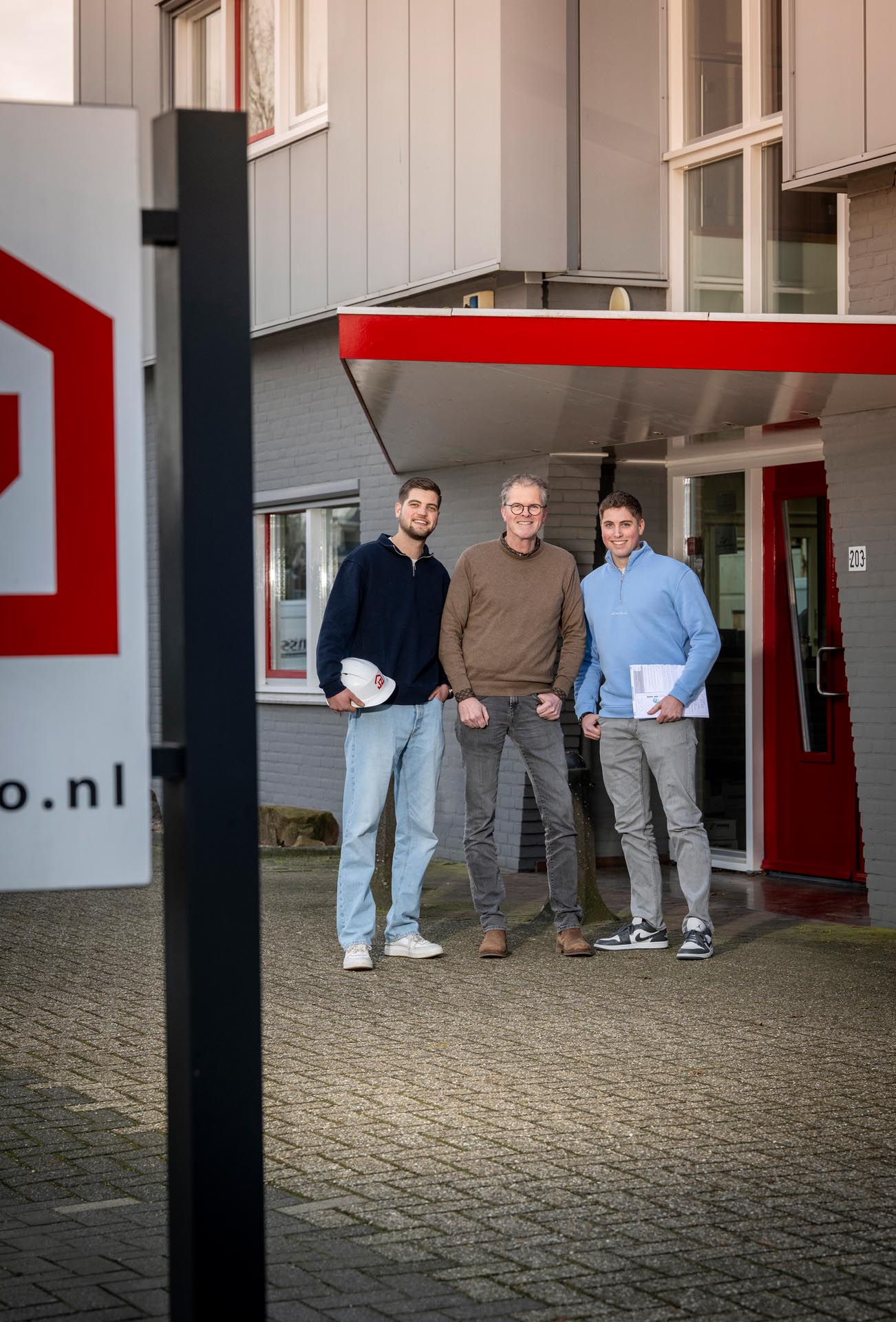 de eerste flats aan de Raadshuisstraat. “Mijn vader, Pierre, is in 1974 als boekhouder in dienst gekomen, om vervolgens in 1989 als mede-eigenaar in te stappen. Hij was degene die de computer introduceerde en het bedrijf verder op de kaart zette. Hij levert momenteel op 82-jarige leeftijd nog steeds een actieve bijdrage aan het calculatiewerk.”